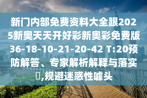 新門內部免費資料大全跟2025新奧天天開好彩新奧彩免費版36-18-10-21-20-42 T:20預防解答、專家解析解釋與落實?,規避迷惑性噱頭