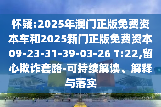 懷疑:2025年澳門正版免費資本車和2025新門正版免費資本09-23-31-39-03-26 T:22,留心欺詐套路-可持續解讀、解釋與落實