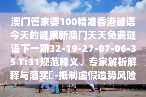 澳門管家婆100精準香港謎語今天的謎跟新澳門天天免費謎語下一期32-19-27-07-06-35 T:31規范釋義、專家解析解釋與落實?-抵制虛假造勢風險