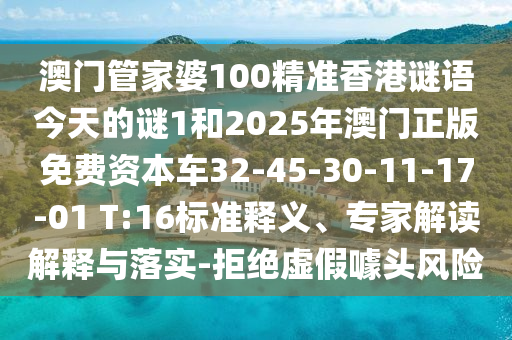 澳門管家婆100精準香港謎語今天的謎1和2025年澳門正版免費資本車32-45-30-11-17-01 T:16標準釋義、專家解讀解釋與落實-拒絕虛假噱頭風險