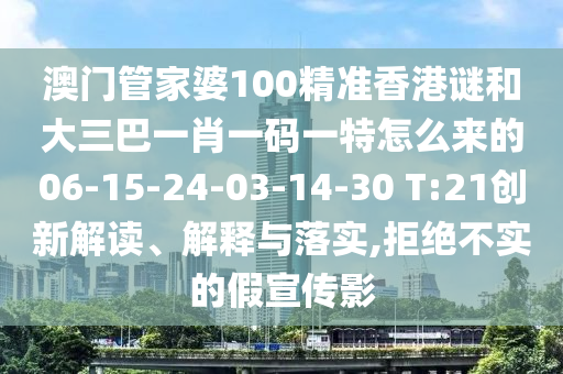 澳門管家婆100精準香港謎和大三巴一肖一碼一特怎么來的06-15-24-03-14-30 T:21創新解讀、解釋與落實,拒絕不實的假宣傳影