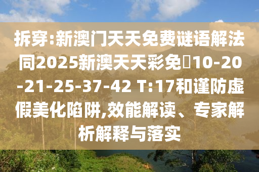 拆穿:新澳門天天免費謎語解法同2025新澳天天彩免費10-20-21-25-37-42 T:17和謹防虛假美化陷阱,效能解讀、專家解析解釋與落實