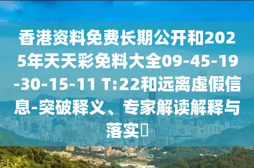 香港資料免費長期公開和2025年天天彩免料大全09-45-19-30-15-11 T:22和遠離虛假信息-突破釋義、專家解讀解釋與落實?