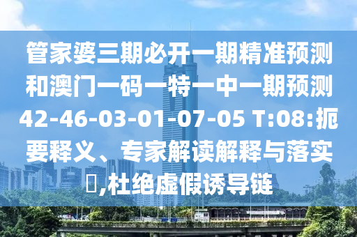 管家婆三期必開一期精準預測和澳門一碼一特一中一期預測42-46-03-01-07-05 T:08:扼要釋義、專家解讀解釋與落實?,杜絕虛假誘導鏈