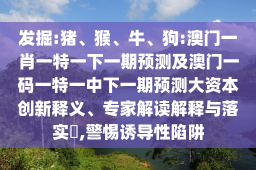 發掘:豬、猴、牛、狗:澳門一肖一特一下一期預測及澳門一碼一特一中下一期預測大資本創新釋義、專家解讀解釋與落實?,警惕誘導性陷阱