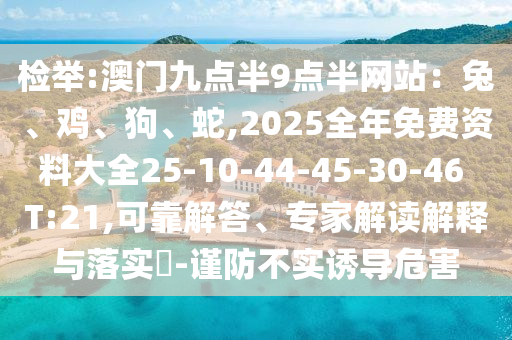 澳門九點半9點半網站:兔、雞、狗、蛇,2025全年免費資料大全25-10-44-45-30-46 T:21的可靠解答、專家解讀解釋與落實?