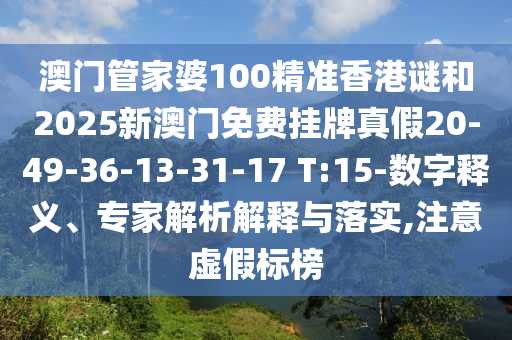澳門管家婆100精準香港謎和2025新澳門免費掛牌真假20-49-36-13-31-17 T:15-數字釋義、專家解析解釋與落實,注意虛假標榜