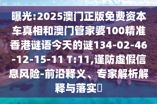 曝光:2025澳門正版免費資本車真相和澳門管家婆100精準香港謎語今天的謎134-02-46-12-15-11 T:11,謹防虛假信息風險-前沿釋義、專家解析解釋與落實?