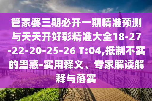 管家婆三期必開一期精準預測與天天開好彩精準大全18-27-22-20-25-26 T:04的實用釋義、專家解讀解釋與落實