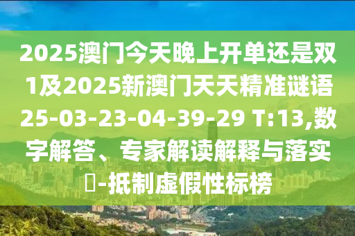 2025澳門今天晚上開單還是雙1及2025新澳門天天精準謎語25-03-23-04-39-29 T:13,數字解答、專家解讀解釋與落實?-抵制虛假性標榜