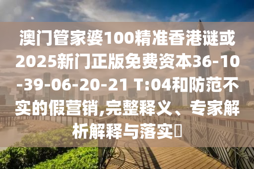 澳門管家婆100精準香港謎或2025新門正版免費資本36-10-39-06-20-21 T:04和防范不實的假營銷,完整釋義、專家解析解釋與落實?