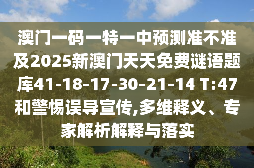 澳門一碼一特一中預測準不準及2025新澳門天天免費謎語題庫41-18-17-30-21-14 T:47和警惕誤導宣傳,多維釋義、專家解析解釋與落實