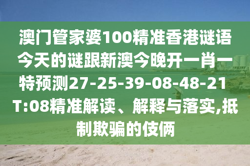 澳門管家婆100精準香港謎語今天的謎跟新澳今晚開一肖一特預測27-25-39-08-48-21 T:08精準解讀、解釋與落實,抵制欺騙的伎倆