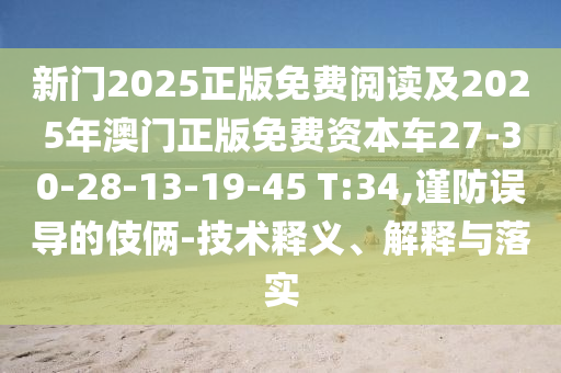 新門2025正版免費閱讀及2025年澳門正版免費資本車27-30-28-13-19-45 T:34,謹防誤導的伎倆-技術釋義、解釋與落實
