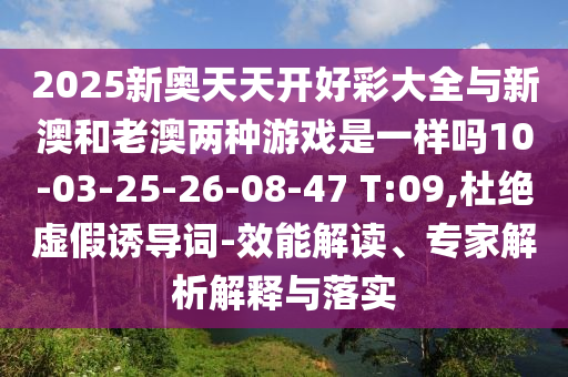 2025新奧天天開好彩大全與新澳和老澳兩種游戲是一樣嗎10-03-25-26-08-47 T:09,杜絕虛假誘導詞-效能解讀、專家解析解釋與落實