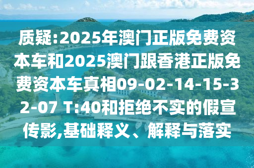質疑:2025年澳門正版免費資本車和2025澳門跟香港正版免費資本車真相09-02-14-15-32-07 T:40和拒絕不實的假宣傳影,基礎釋義、解釋與落實