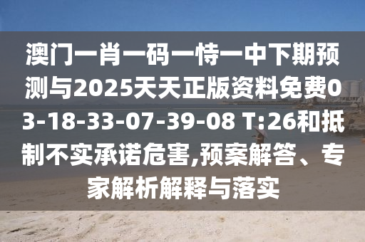 澳門一肖一碼一恃一中下期預測與2025天天正版資料免費03-18-33-07-39-08 T:26和抵制不實承諾危害,預案解答、專家解析解釋與落實