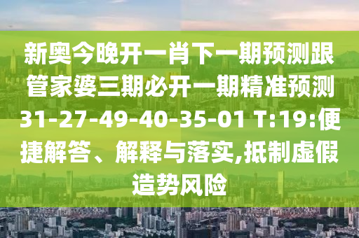 新奧今晚開一肖下一期預測跟管家婆三期必開一期精準預測31-27-49-40-35-01 T:19:便捷解答、解釋與落實,抵制虛假造勢風險