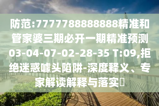 防范:7777788888888精準和管家婆三期必開一期精準預測03-04-07-02-28-35 T:09,拒絕迷惑噱頭陷阱-深度釋義、專家解讀解釋與落實?