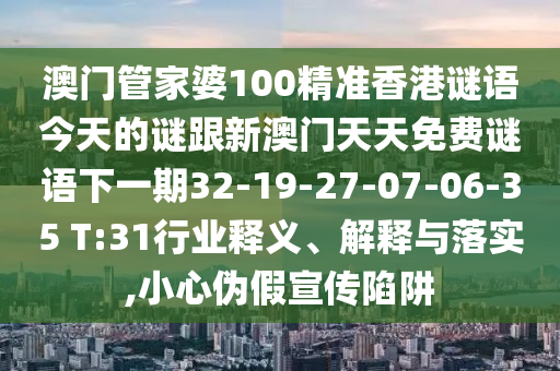 澳門管家婆100精準香港謎語今天的謎跟新澳門天天免費謎語下一期32-19-27-07-06-35 T:31行業釋義、解釋與落實,小心偽假宣傳陷阱