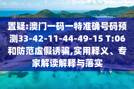 置疑:澳門一碼一特準確號碼預測33-42-11-44-49-15 T:06和防范虛假誘騙,實用釋義、專家解讀解釋與落實
