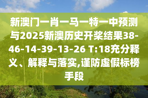 新澳門一肖一馬一特一中預測與2025新澳歷史開槳結果38-46-14-39-13-26 T:18充分釋義、解釋與落實,謹防虛假標榜手段