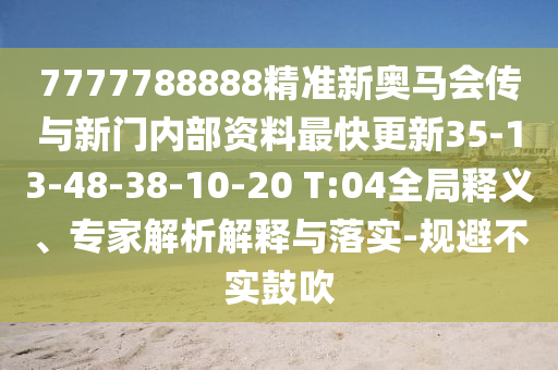 涉及到“7777788888精準新奧馬會傳與新門內部資料最快更新”,以及一個特定的時間規劃“35-13-48-38-10-20 T:04”,從初步理解來看,這些內容似乎涉及到某種信息傳達、內部資料的更新與傳播,并帶有一定的精準性和時效性要求,而“新奧馬會”和“新門”可能是某種組織或平臺的名稱,關于它們的內部資料更新可能涉及到某種行業或領域的最新動態和信息,至于時間規劃部分,可能是某種活動或事件的安排時間表,至于“T:04”,其具體含義尚無法確定,可能需要更多上下文信息來解讀。
