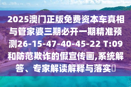 2025澳門正版免費資本車真相與管家婆三期必開一期精準預測26-15-47-40-45-22 T:09和防范欺詐的假宣傳畫,系統解答、專家解讀解釋與落實?