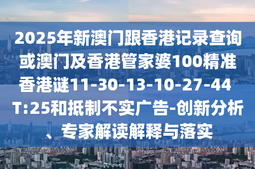 2025年新澳門跟香港記錄查詢或澳門及香港管家婆100精準香港謎11-30-13-10-27-44 T:25和抵制不實廣告-創新分析、專家解讀解釋與落實