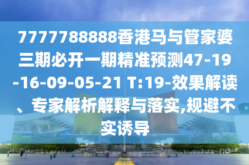 7777788888香港馬與管家婆三期必開一期精準預測47-19-16-09-05-21 T:19的效果解讀、專家解析解釋與落實