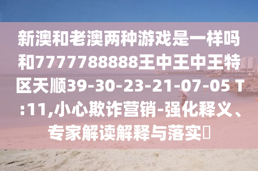 新澳和老澳兩種游戲是一樣嗎和7777788888王中王中王特區天順39-30-23-21-07-05 T:11,小心欺詐營銷-強化釋義、專家解讀解釋與落實?