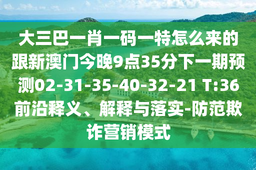 大三巴一肖一碼一特怎么來的跟新澳門今晚9點35分下一期預測02-31-35-40-32-21 T:36的前沿釋義、解釋與落實