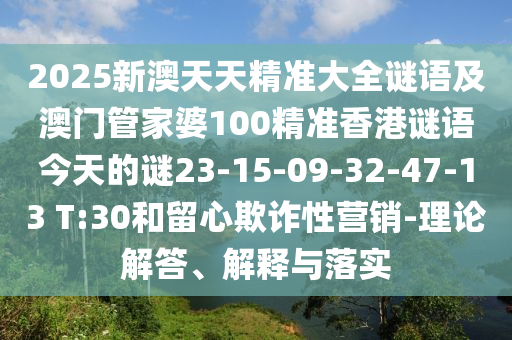 2025新澳天天精準大全謎語及澳門管家婆100精準香港謎語今天的謎23-15-09-32-47-13 T:30和留心欺詐性營銷-理論解答、解釋與落實