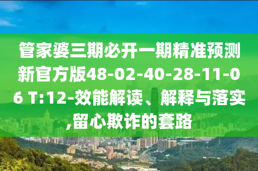 管家婆三期必開一期精準預測新官方版48-02-40-28-11-06 T:12-效能解讀、解釋與落實,留心欺詐的套路