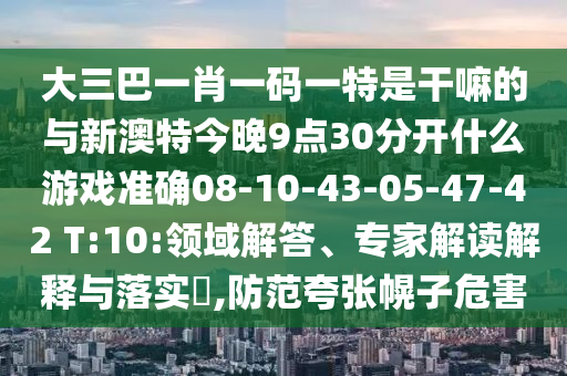 大三巴一肖一碼一特是干嘛的與新澳特今晚9點30分開什么游戲準確08-10-43-05-47-42 T:10:領域解答、專家解讀解釋與落實?,防范夸張幌子危害