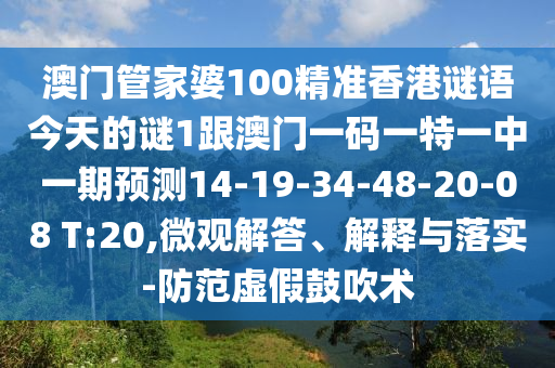 澳門管家婆100精準香港謎語今天的謎1跟澳門一碼一特一中一期預測14-19-34-48-20-08 T:20:微觀解答、解釋與落實