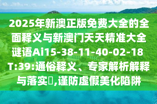 2025年新澳正版免費大全的全面釋義與新澳門天天精準大全謎語Ai15-38-11-40-02-18 T:39通俗釋義、專家解析解釋與落實”以及“謹防虛假美化陷阱”的解析與警示
