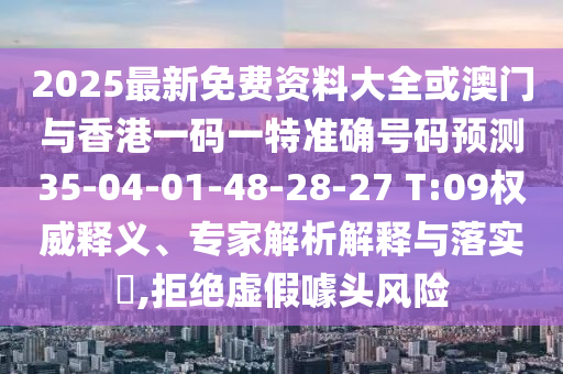 2025最新免費資料大全或澳門與香港一碼一特準確號碼預測35-04-01-48-28-27 T:09權威釋義、專家解析解釋與落實?,拒絕虛假噱頭風險