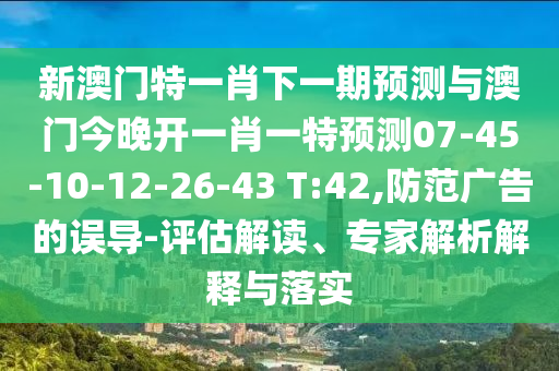 新澳門特一肖下一期預測與澳門今晚開一肖一特預測07-45-10-12-26-43 T:42,防范廣告的誤導-評估解讀、專家解析解釋與落實