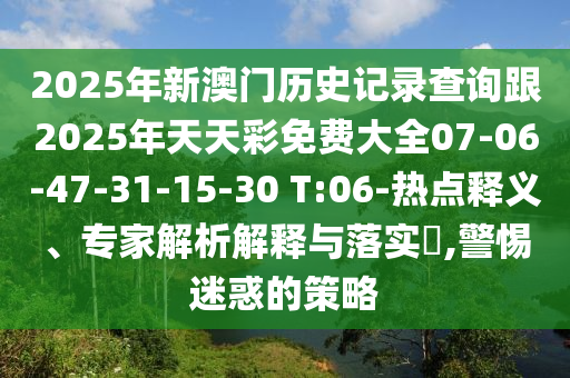 2025年新澳門歷史記錄查詢跟2025年天天彩免費大全07-06-47-31-15-30 T:06-熱點釋義、專家解析解釋與落實?,警惕迷惑的策略