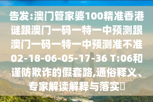 告發:澳門管家婆100精準香港謎跟澳門一碼一特一中預測跟澳門一碼一特一中預測準不準02-18-06-05-17-36 T:06和謹防欺詐的假套路,通俗釋義、專家解讀解釋與落實?
