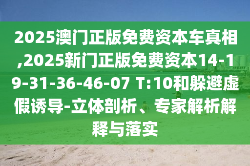 2025澳門正版免費資本車真相,2025新門正版免費資本14-19-31-36-46-07 T:10的立體剖析、專家解析解釋與落實