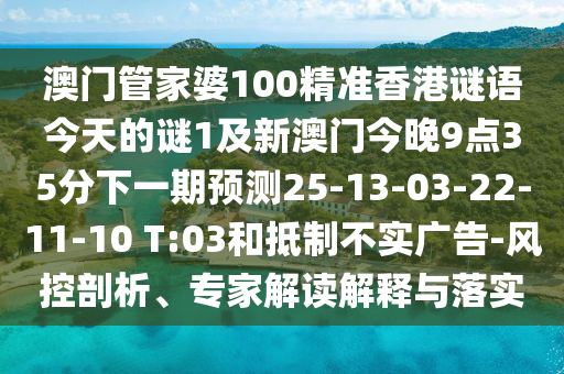 澳門管家婆100精準香港謎語今天的謎1及新澳門今晚9點35分下一期預測25-13-03-22-11-10 T:03和抵制不實廣告-風控剖析、專家解讀解釋與落實