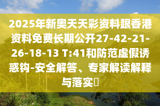 2025年新奧天天彩資料跟香港資料免費長期公開27-42-21-26-18-13 T:41和防范虛假誘惑鉤-安全解答、專家解讀解釋與落實?