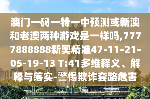 澳門一碼一特一中預測或新澳和老澳兩種游戲是一樣嗎,7777888888新奧精準47-11-21-05-19-13 T:41多維釋義、解釋與落實-警惕欺詐套路危害