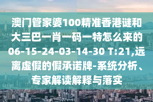 澳門管家婆100精準香港謎和大三巴一肖一碼一特怎么來的06-15-24-03-14-30 T:21,遠離虛假的假承諾牌-系統分析、專家解讀解釋與落實