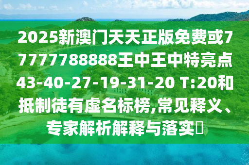 2025新澳門天天正版免費或77777788888王中王中特亮點43-40-27-19-31-20 T:20和抵制徒有虛名標榜,常見釋義、專家解析解釋與落實?