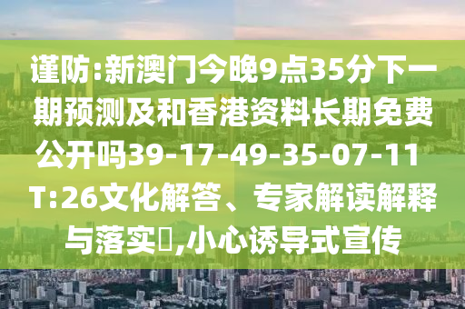 謹防:新澳門今晚9點35分下一期預測及和香港資料長期免費公開嗎39-17-49-35-07-11 T:26文化解答、專家解讀解釋與落實?,小心誘導式宣傳