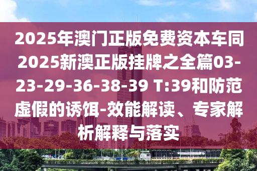 2025年澳門正版免費資本車同2025新澳正版掛牌之全篇03-23-29-36-38-39 T:39和防范虛假的誘餌-效能解讀、專家解析解釋與落實