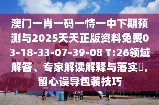 澳門一肖一碼一恃一中下期預測與2025天天正版資料免費03-18-33-07-39-08 T:26領域解答、專家解讀解釋與落實?,留心誤導包裝技巧
